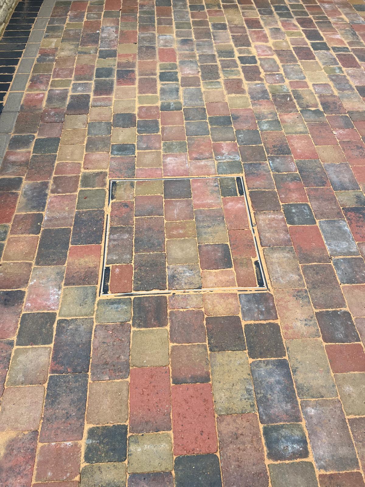 Below, beautiful grey blockpaving with matching Manhole cover....