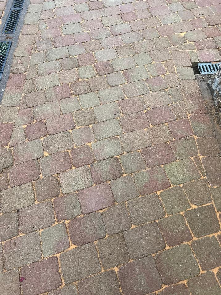 Below. Beautiful driveway created by P&A. The wet may make the colours look odd but they arent .