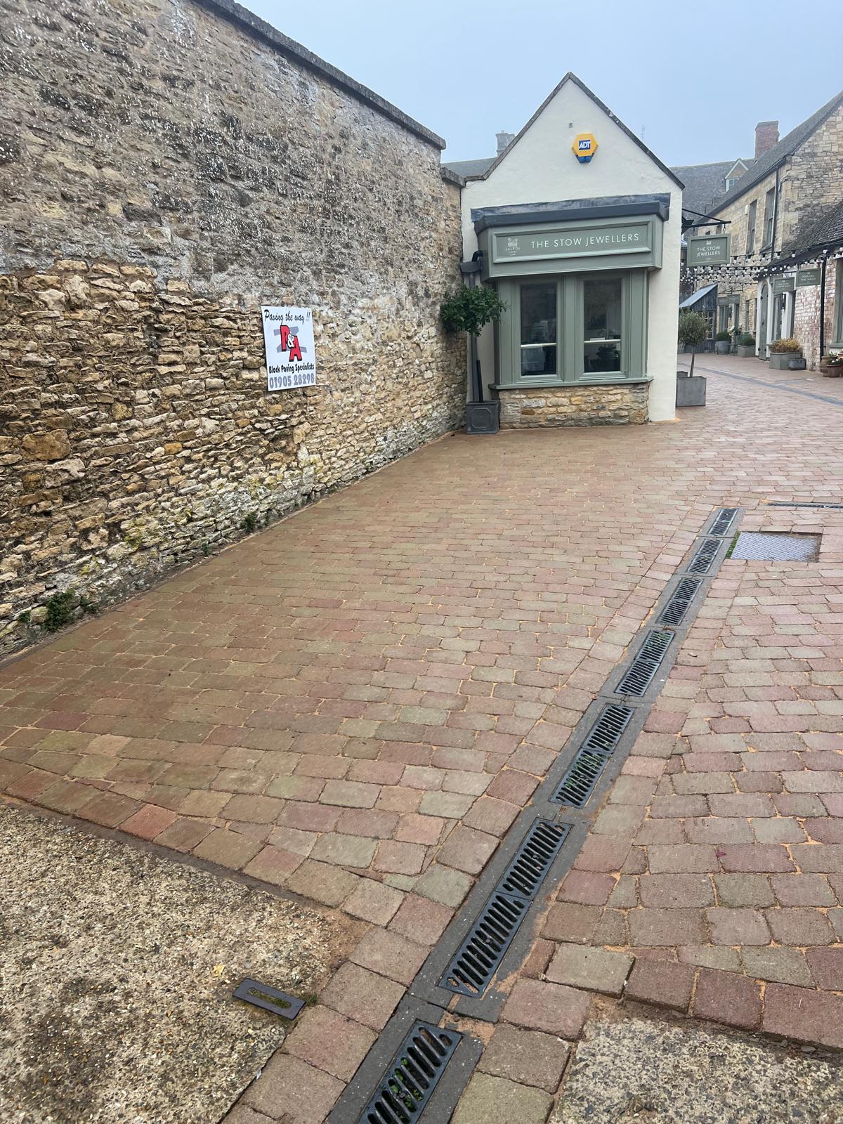 Completed works at Talbot Court Stow.. NB scratches nothing to do with paving .(deliveries to shops)..